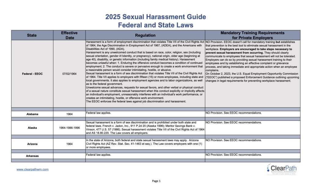 Sexual Harassment Training Mandates by State for 2025 Preventing sexual harassment has been on the agenda for most companies since Title VII of the Civil Rights Act of 1964, which prohibits sexual harassment and discrimination in the workplace. But